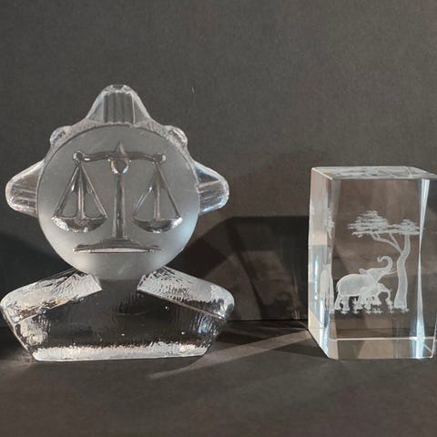 Kristallfigurer designet av den anerkjente svenske glasskunstneren Mats Jonasson for Målerås Glasbruk i Sverige. Skulpturene er en del av hans populære "Wildlife"-serie og er laget av svensk helkrystall. Kommer med originaleske og er signert for hånd.