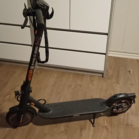 Flott elsparkseykkel e-way E-3530. 20km/t. Punkteringsfrie dekk. Lader medfølger. Lite og pent brukt. Alt virker som det skal. Kjøpt i august 2025.