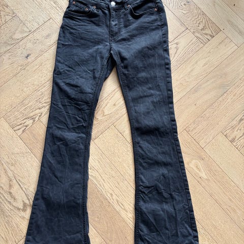 Gina Tricot jeans for dame i størrelse S. Buksen er i grå denim. Klassisk femlommers modell med beltehemper og glidelås med knapp i front. Passer til hverdagsbruk og kan kombineres med ulike topper og gensere.