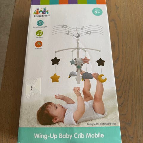 • Praktisk oppheng: Inkluderer en sirkulær krok slik at den enkelt kan henges på sengen, vognen eller bilstolen.