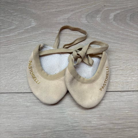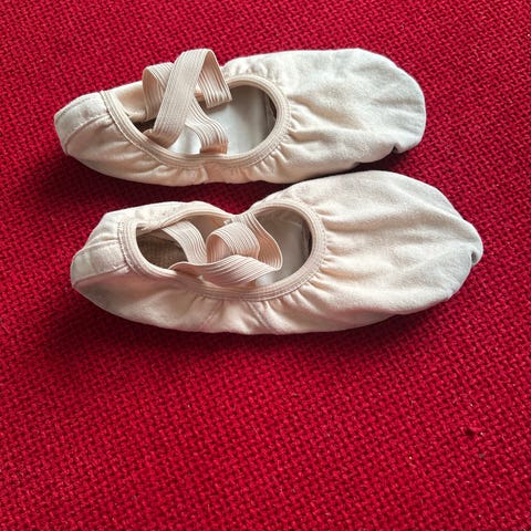 Hudfarget balletsko i stoff/canvas med split sole. Brukt en sesong av et barn. Mye sko igjen!! Kostet 285 kr nye.