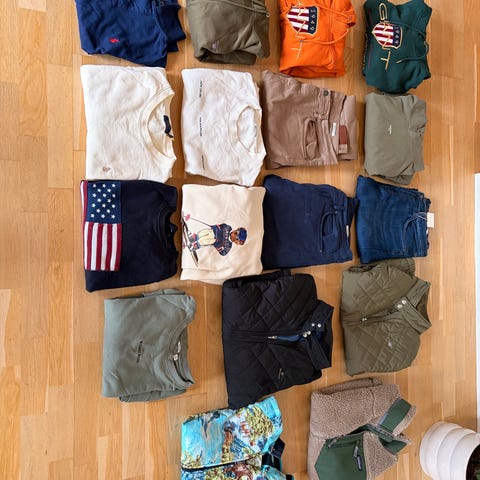 Klespakke til mann i str L. Noen få plagg i mindre str kan være der. Noe i god stand, noe ikke brukt, noe godt brukt. Bruksmerker/flekker kan forekomme på noen plagg.