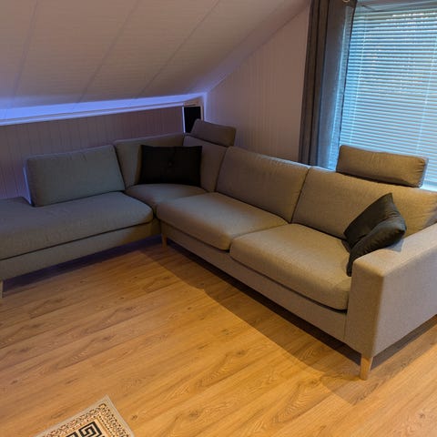 Selger en sofa fra Litsofa med tilhørende sjeselong. Sjeselongen har mål 70x90. Må hentes i 5. etasje uten heis, men kan være behjelpelig med utbæring.