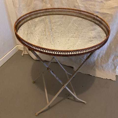 Lite dekorativt bord som er 49 cm høyt og 60 cm bred. Det er brukt, Selges for 400
