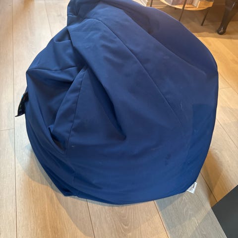 Rød sammenleggbar sitte-/liggepute selges. Kan brettes ut til madrass og brukes som ekstra soveplass, eller brettes sammen til stor og komfortabel puff/stol.