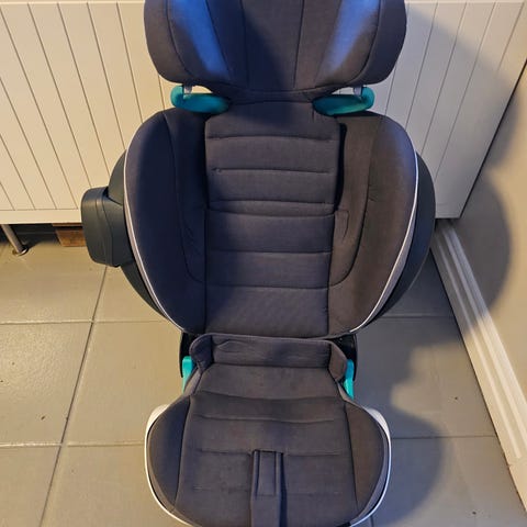 høsten 2019 og har stått fastmontert i en bil. Har ikke vært i kollisjon. Setet er helt og fint, men trekket kan trenge en vask. Beregnet på barn mellom 100-150cm og 15-36kg.