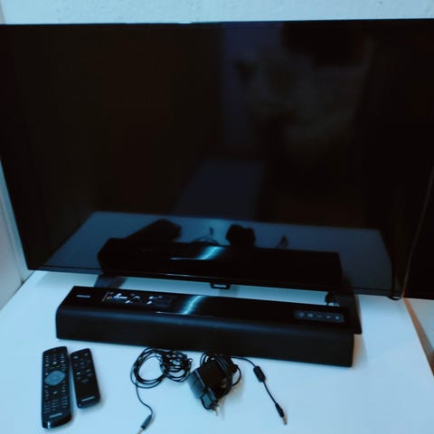 TV-en leveres med fjernkontroll og strømledning slik det fremgår av bildene. Passer som hoved-TV eller sekundær-TV i for eksempel stue, kjellerstue eller soverom.