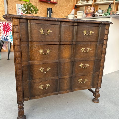 Skap / kommode / skjenk i tre gis bort. Ser ut til å være finert tre. Skapet har fem skuffer, hvorav tre av skuffene er bak skapdører.