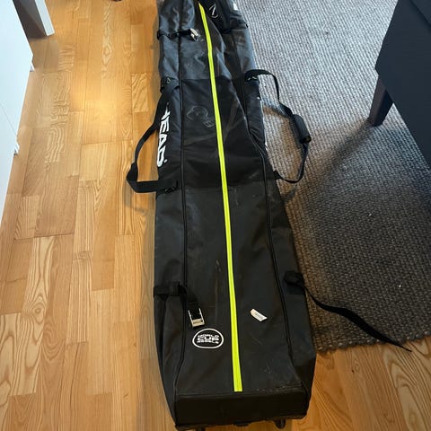 Dakine skitrekk i svart farge. Trekket er polstret og har glidelås langs siden for enkel tilgang. Innvendig er det fôret med slitesterkt materiale som beskytter ski og bindinger under transport og lagring. Yttersiden har bærehåndtak og forsterkninger på utsatte områder. Egnet for oppbevaring og transport av et par ski med bindinger.
