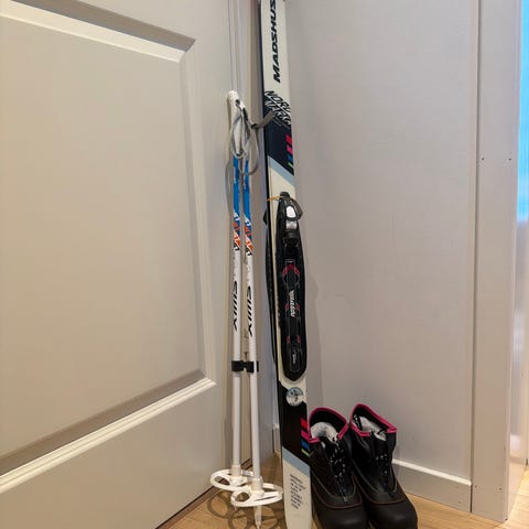 Madshus langrennsski med Rottefella-bindinger 100 cm. Skiene er klassiske langrennsski med NNN-kompatible Rottefella-bindinger. Staver i matchende farger følger med. Rossignol langrennssko str 31. som ser ut til å være tilpasset NNN-systemet. Utstyret passer til bruk i preparerte skiløyper og gir et komplett sett for langrenn med ski, staver og sko dersom størrelser stemmer for brukeren.