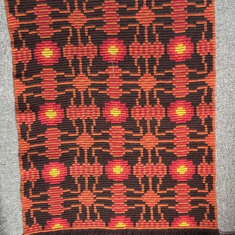 Åkle Veggbroderi løper med blomstermotiv med oppheng