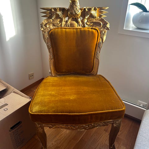 Kvalitets stol i heltre med trekk i typisk «hytte»-mønster. Fremstår som relativt ny. Selges da ikke i bruk.