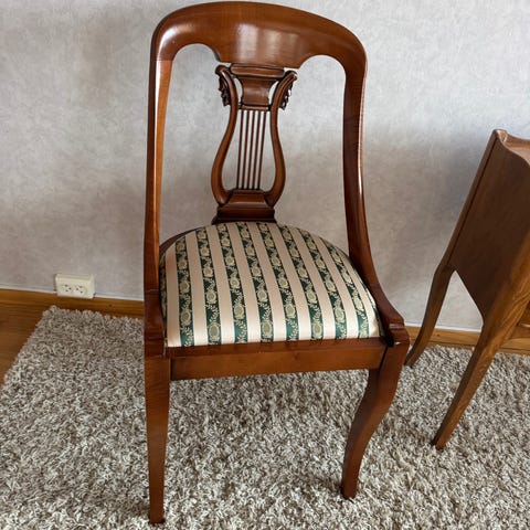 Kvalitets stol i heltre med typisk hytte mønster. Fremstår som relativt ny