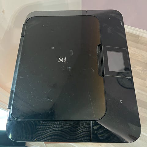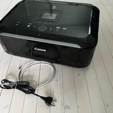 Velfungerende Canon multifunksjonsskriver i svart. Enheten kombinerer skriver, skanner og kopimaskin i én maskin. Egnet for hjemmebruk eller lite kontor. USB-kabel følger med slik at skriveren kan kobles direkte til datamaskin. Modellen har betjeningspanel på høyre side med display og knapper for valg av funksjoner. Fortsatt skriverblekk igjen gis bort da jeg har fått ny.