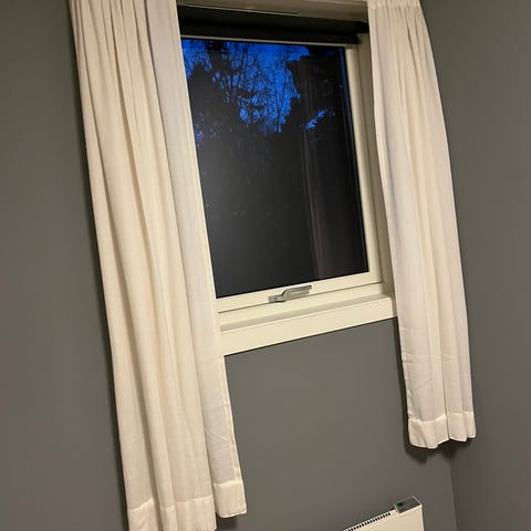 Den ene gardinen har en flekk (se siste bildet). Denne er ikke forsøkt fjernet.