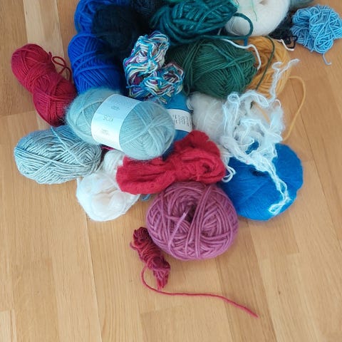 Totalt ca 185 g rester fra Rauma og Sandnes (Perfect og Smart). Vekt pr nøste angitt.