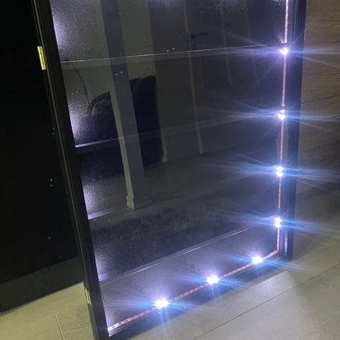 Skap, case, hylle, akryl, visning, gradert, kort, pokemon, fotballkort, sportskort, pakker, LED.