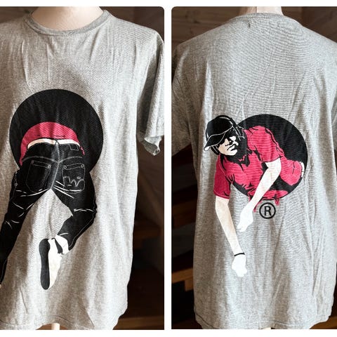 Svart herre T-skjorte med LA print i 100% bomull. Størrelse XL. Hel lengde; 75 cm fra nakken.