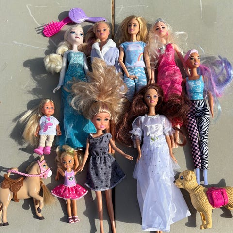 • Ca. 15–18 Barbie-dukker (blant annet prinsesser, havfrue og Ken)