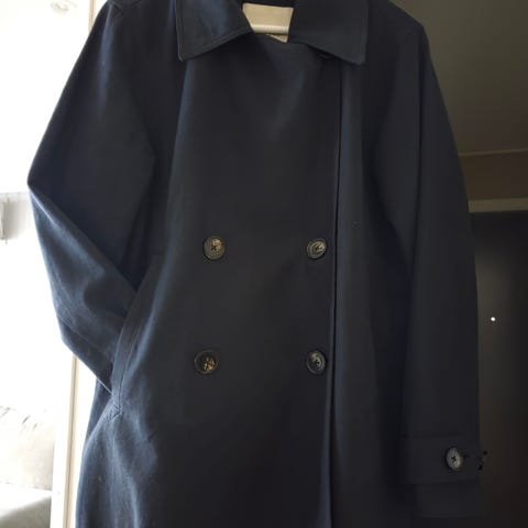 55% Bomull og 45% Lin. Super kvalitet som er myk og lett. Størrelse 36. Jakken er en en fin mørkeblå farge. Er så god som ny, er bare brukt et par ganger.