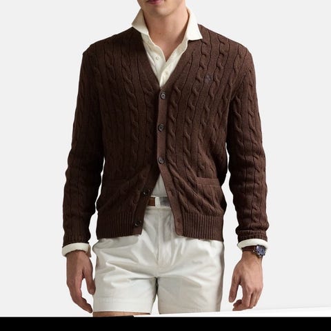 Ralph Lauren Polo cardigan herre L blå merinoull
