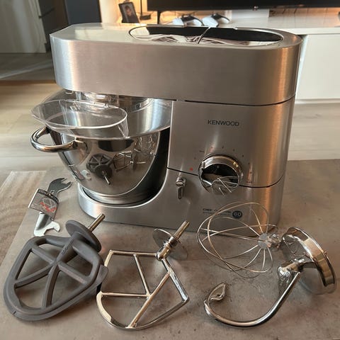 Selger en kraftig og solid Kenwood Chef XL Titanium (1700W) med stor 6,7 liters rustfri bolle. Dette er en robust kvalitetsmaskin med god kapasitet, godt egnet for brødbaking, gjærdeig, kaker, marengs m.m.