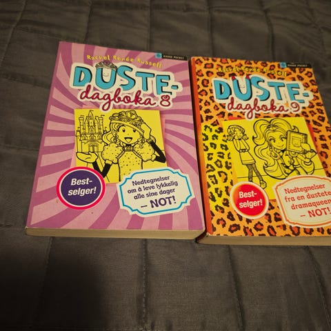 Rachel Renée Russell Dustedagboka og Dork Diaries Party Time bøker. To bøker i serien om Nikki Maxwell, én norsk utgave (Dustedagboka) i innbundet format og én engelsk utgave (Dork Diaries: Party Time) i pocketformat. Bøkene er illustrerte dagbokromaner for barn og unge, med tekst og tegneserielignende illustrasjoner. Egner seg for lesere som liker humoristiske historier fra skole- og hverdagsliv i dagbokform.