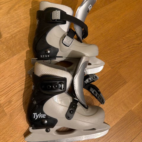 Tempish Pro Flyer T5 ishockeyskøyter i størrelse 40. Skøytene har svart og rød overdel med snøring og polstret innside. Understell i hvit plast med stålskinne tilpasset ishockeybruk. Egner seg til ishockey og generell bruk på is for barn eller mindre føtter som passer størrelse 40.