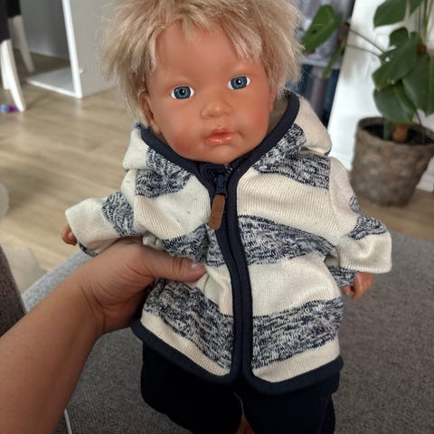 Pent brukt baby dukke som reborn dukke. Selges samlet met dukkepose, noen dukkeklær og tilbehør.