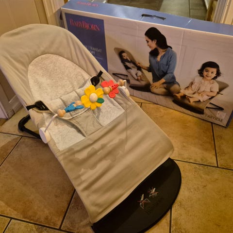 Godt brukt babybjørn vippestol selges! Det er to små rifter i stoffet (kan sikkert enkelt sys, og har ingen betydning for bruk). Ellers er stolen pent brukt og mye bruk igjen🩷Åpen for bud!