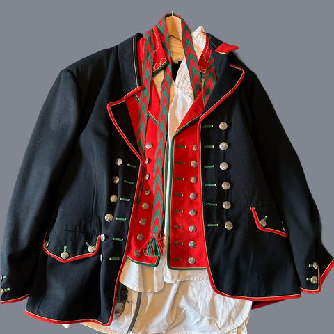 - Jakke og vest (størrelse 48/50) med påmontert sølv