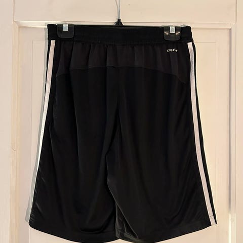 Nike Dri-FIT basketballshorts for herre i størrelse XL. Shortsen er svart med hvite striper langs sidene og nederst på bena. Laget i lett, teknisk materiale med fukttransporterende Dri-FIT-teknologi. Elastisk linning med snøring for justerbar passform. Egnet til basketball og annen trening, samt fritidsbruk.