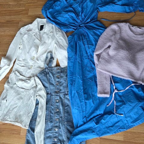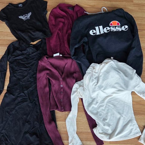 Selger en klespakke bestående av fire bukser. Pent brukte, og en helt ubrukt. Størrelse xs/s.