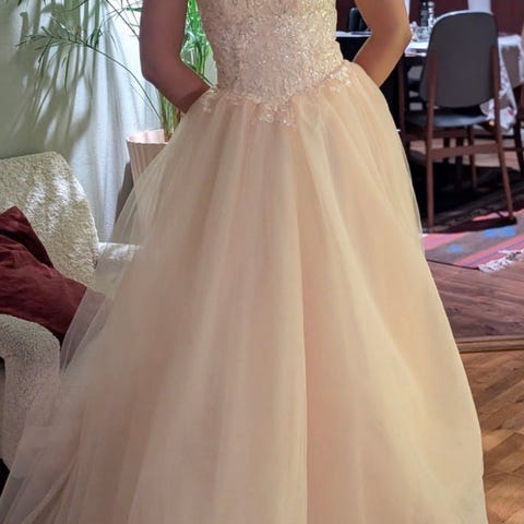 Ballkjole lys fersken, str XS leies ut