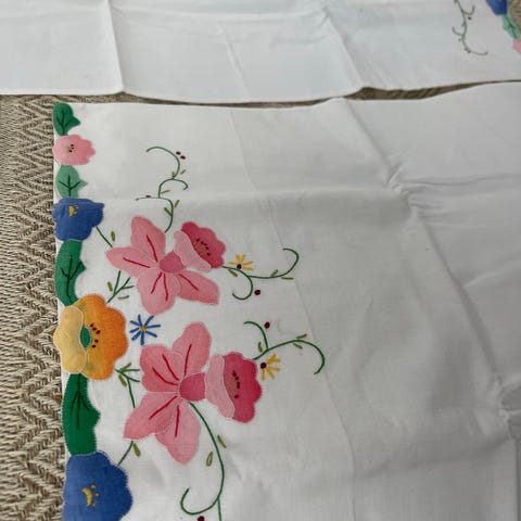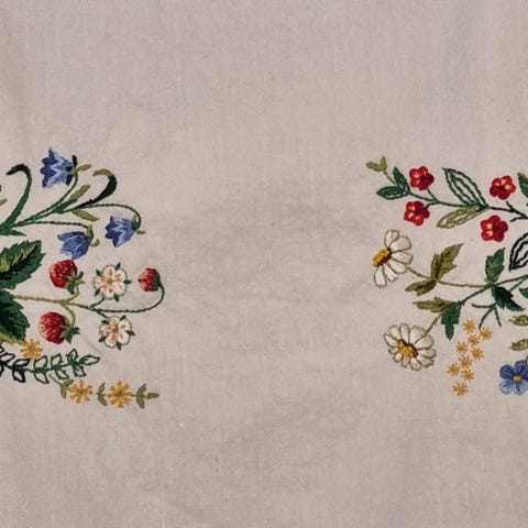 To putetrekk med brodert blomstermønster, 57 × 47 cm