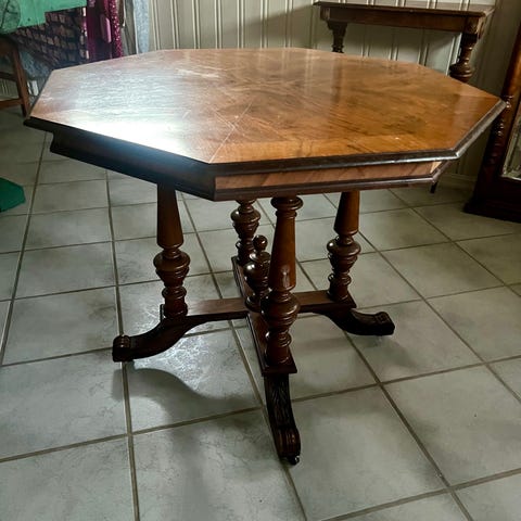 Bordplaten trenger og pusses med fint sandpapir og et strøk olje, så blir det som nytt.
