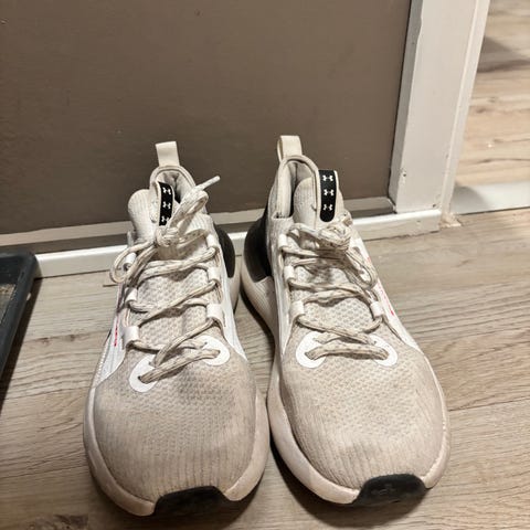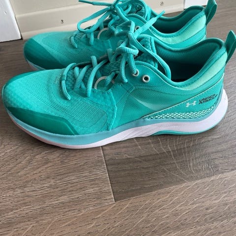 Helt nye joggesko fra under armour. Jeg har hatt et par akkurat like selv som jeg likte veldig godt, og kjøpte disse i reserve til de andre var utslitt. Men har begynt å bruke et annet merke senere. Sitter godt på foten og god demping, veldig gode å løpe i. Er også perfekt å bruke som hverdagssko, klassiske svarte sko med hvit såle. Nøytrale og passer til alt.