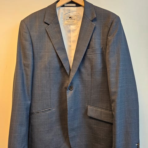 Moods of Norway dressjakke for herre i størrelse 50. Jakken er grå med rutemønster og er laget i ull. Den har klassisk jakkeslag, to knapper i front og fire knapper på ermet. Innsiden har rutete fôr og flere innerlommer. Passer til dressbukse eller chinos til både formelle og halvformelle anledninger.
