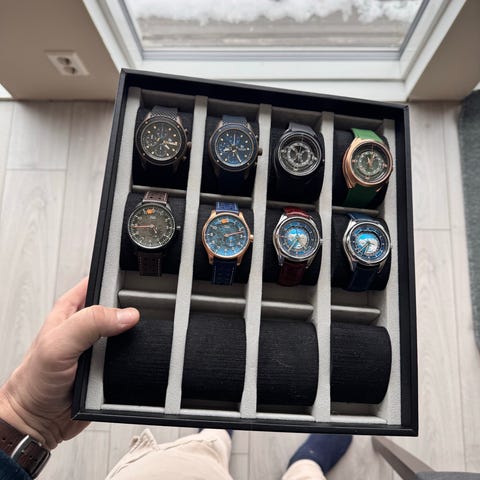 Er et veldig fint klokke skrin og er plass til 12 klokker.