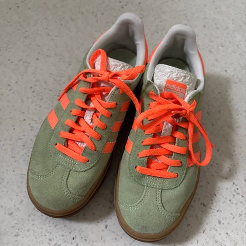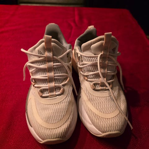 Noen bruksmerker på utsiden, noe slitt i stoffet på innsiden av helen. Brukt én sesong. Veldig komfortabel såle.
