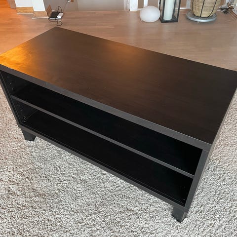 TV benk fra A-møbler, størrelse 60×120 cm. Det er skrapet på en side. Det er også litt skeiv men det er fordi det ble dårlig møntert. Gis borte til dem som kommer å hente det.