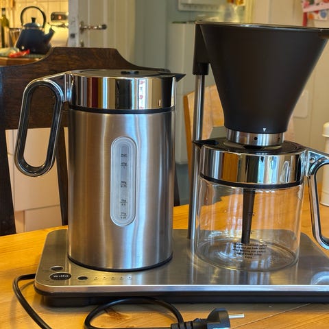 Selger Wilfa svart manuell kaffebrygger som du kan både koke vann til te med og brygge kaffe☕️ 🫖 Jeg har kun brukt den til å kome vann med, så tilstanden er som ny.