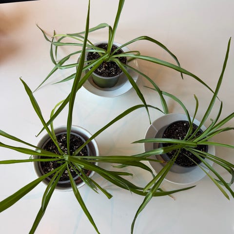 Kunstig gressplante i potte i grønn farge. Planten står i en enkel, svart plastpotte med fyllmasse som holder stilkene på plass. Egner seg som dekorasjon innendørs, for eksempel i stue, gang eller kontor, der man ønsker et planteuttrykk uten krav til stell og vanning.