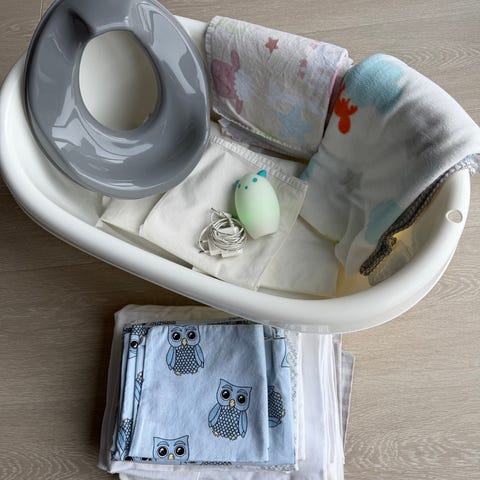 Selger doring, potte, stellematte fra beemoo og 2 stk bleieposer til søppelbøtte for bleier