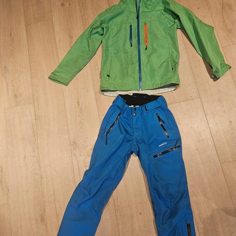 Turkis og blå Bergans Knyken skijakke og bukse.