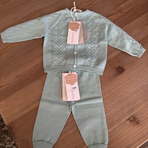 Nydelig strikket ullbukse til baby i 100% ull, laget ved Quo Vadis i Oslo. Buksen er 67 cm lang. Ikke brukt, nydelig kvalitet. Den kan sendes, porto kommer da i tillegg og betales av kjøper.