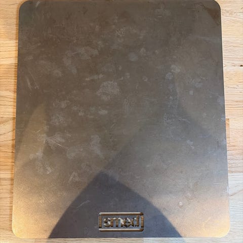 Pizza- stekeplate i stål.