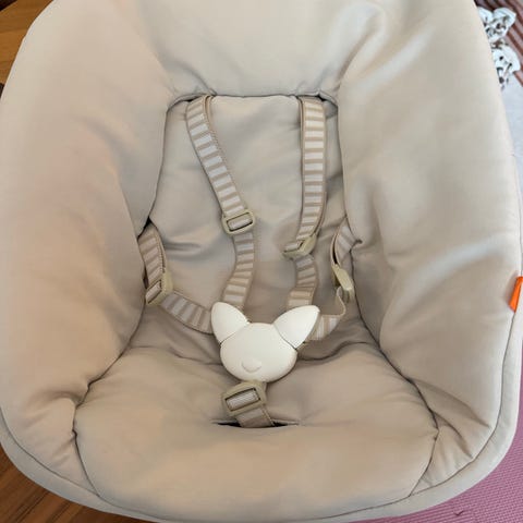 Stokke newborn sete, uten regulering (bare halvsittende posisjon). Vi har kjøpt den brukt og brukte den for tre måneder. Ingen flekker eller skader. Funker som skal. Kan hentes i Skien.