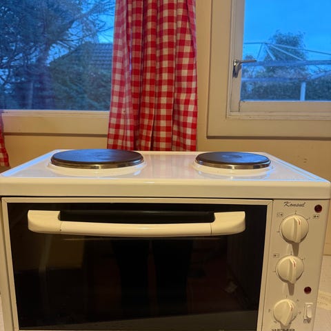 Selger en praktisk og plassbesparende minikomfyr fra Wilfa (modell EMK 218). Perfekt til hybel, studentbolig, camping eller som ekstra komfyr.