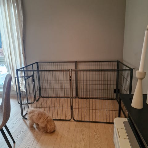Stor Valpegrind i 8 deler. Kjøpt på finn til vår golden valp, men ble ikke brukt.